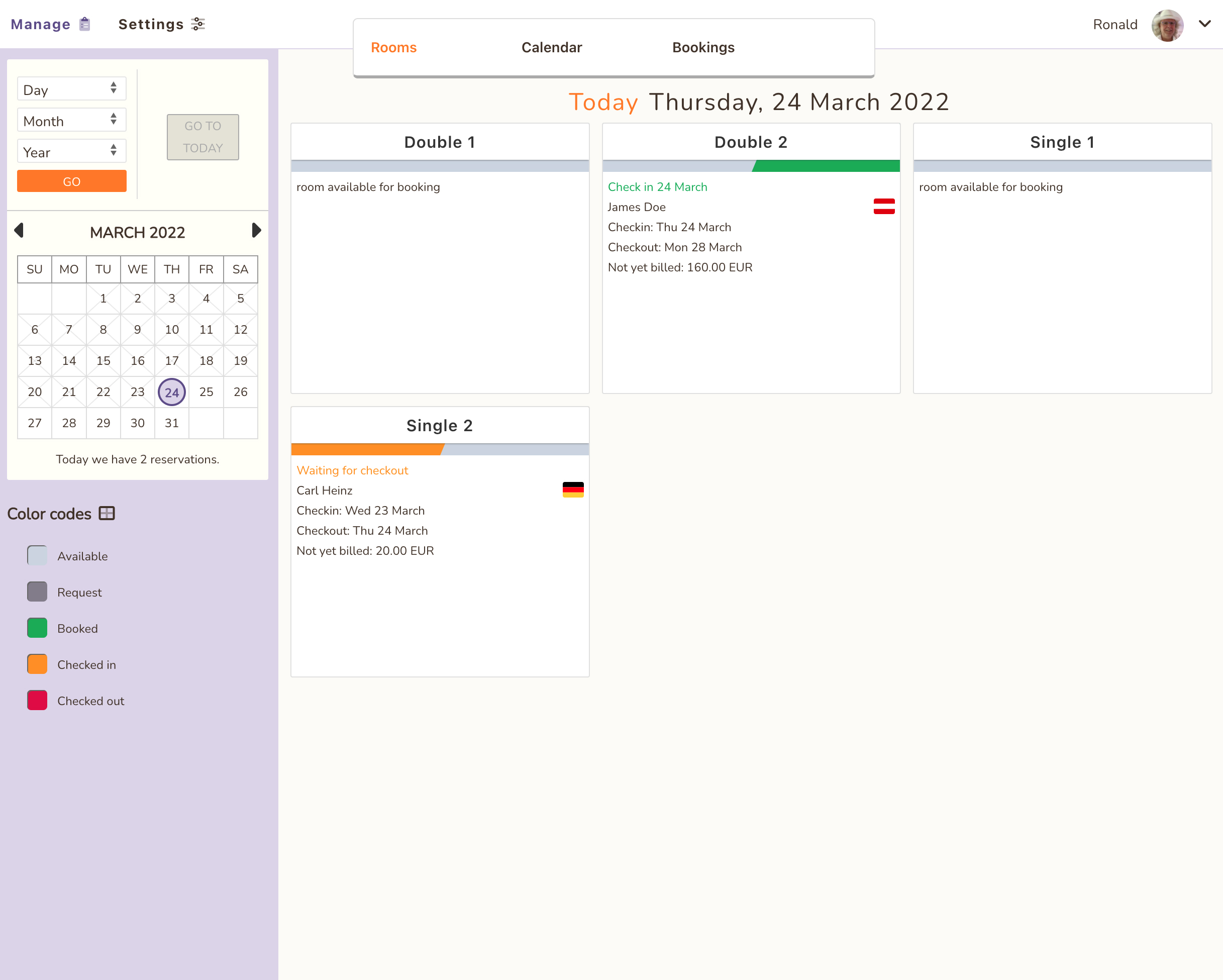 In the backend staff has the ability to mananage the rooms and create invoices.